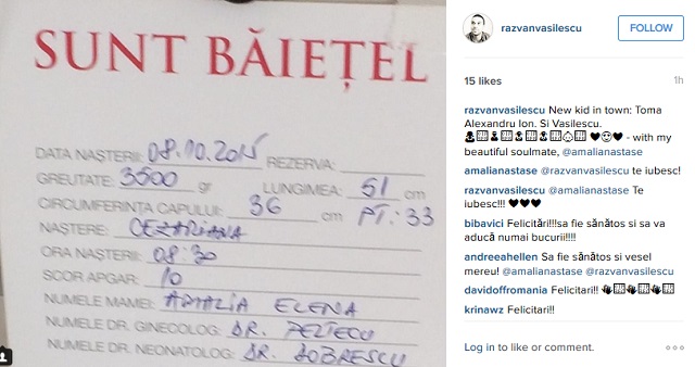 Amalia, fosta soţie a lui Ilie Năstase, a adus pe lume prin cezariană un băieţel de 3, 500 kg şi 53 de cm. Atât mama, cât şi copilul sunt sănătoşi. Marea veste a fost anunţată pe reţelele de socializare de partenerul de viaţă al Amaliei, Răzvan Vasilescu.
