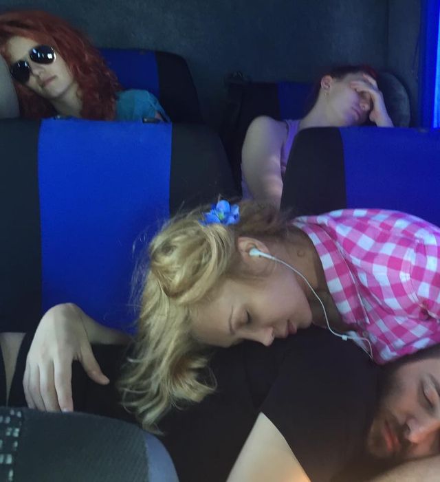 În imaginea, Lora pare extenuată de drumurile lungi ale patriei şi fură un pui de somn înainte să ajungă la destinaţie. Cu capul, pe picioarele ei stă un bărbat, pe care artista îl îmbrăţişează. Prietenii virtuali au remarcat relaţia apropiată dintre cei doi şi, în timp ce mulţi au spus că tânărul bărbos este Vlad, fratele artistei, cârcotaşii s-au grăbit să semnaleze că Lora doarme împreună cu Ionuţ, impresarul ei.