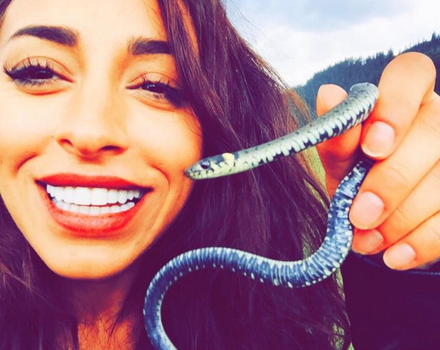 Într-o imagine de pe internet, vedeta apare ţinând în mână un şarpe. Fotografia i-a speriat pe fanii vedetei, care au atenţionat-o să aibă grijă că poate să o muşte. Chiar şi aşa, artista s-a jucat cu reptila şi chiar numit-o "Nicuşor".