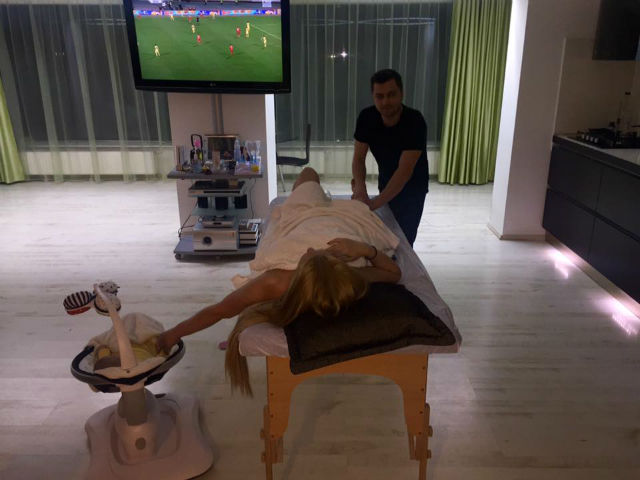 Artista a avut în această seară câteva momente de relaxare, chiar în living-ul casei sale. "Aşa am urmărit noi meciul. Pe barosăneală! Când nu pot să merg eu la Spa, vine Spa-ul la mine", a scris Anda Adam pe pagina unui site de socializare.