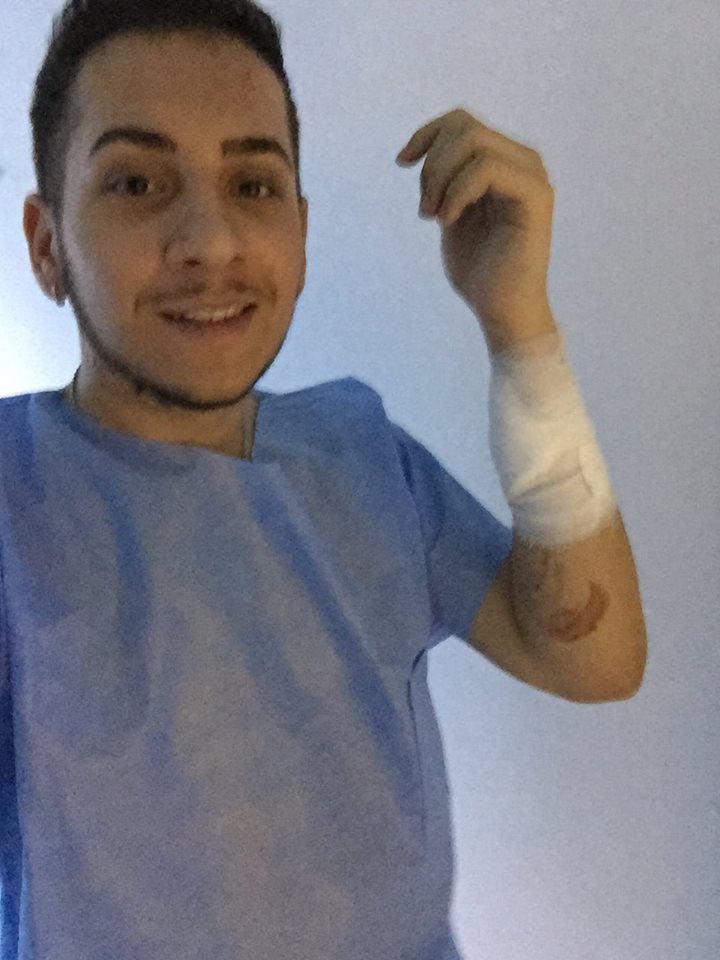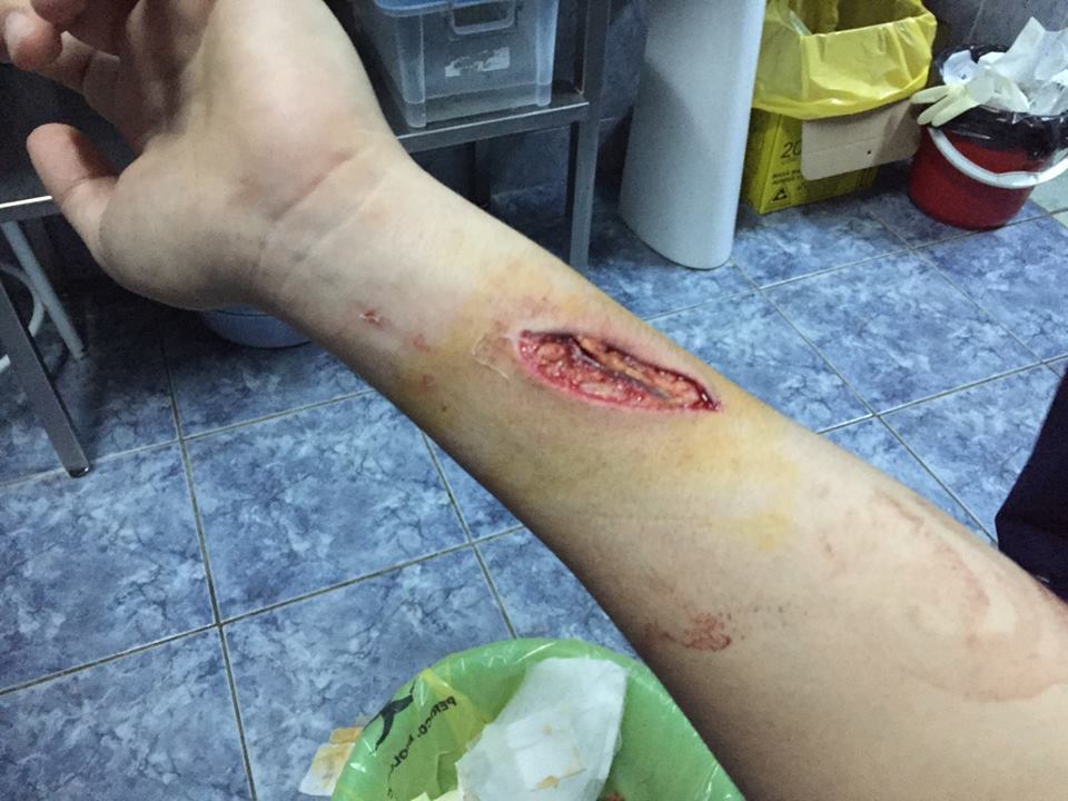 "Atenţiune oameni buni! Nu vă căţăraţi pe garduri că nu e de joacă! M-am tăiat foarte rău la mână! Aveţi grijă! Chiar acum o să-mi coasă mâna!— la Spitalul Municipal București", este mesajul care însoţeşte imaginile postate de Fulgi pe o reţea de socializare.