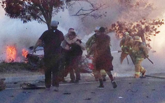 Moartea lui Paul Walker i-a făcut pe prietenii care au ajuns la locul incidentului să recurgă la un gest extrem, iar poliţiştii şi pompierii au încercat să se lupte cu ei pentru a-i împiedica să se arunce în foc.