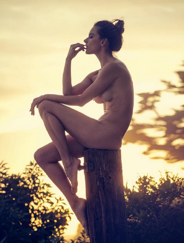 Astfel, îngeraşul Victoria’s Secret a renunţat la inhibiţii şi la haine şi a pozat goală, în toată splendoarea, ea protejându-şi sânii doar cu mâinile.