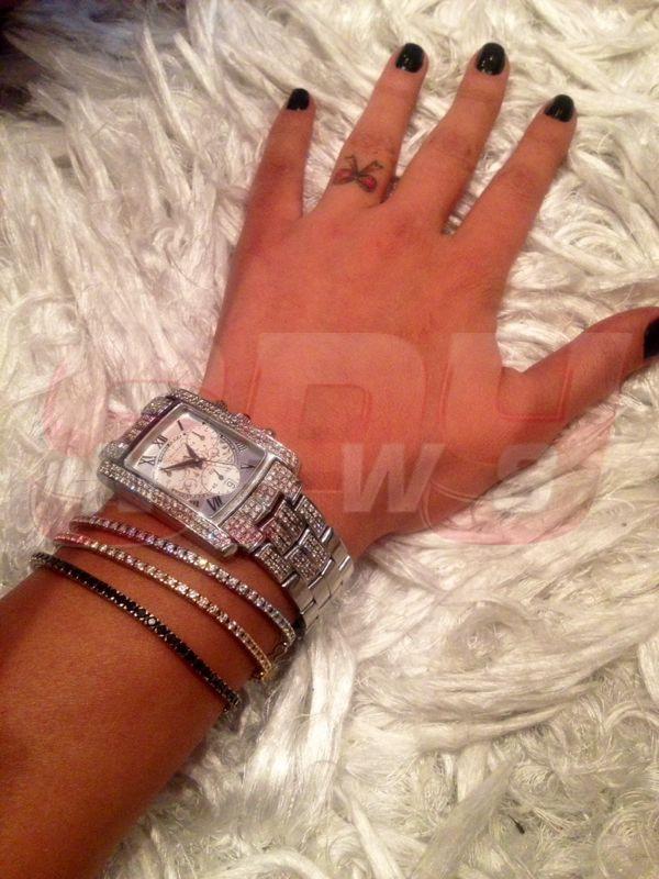 Astfel, iubitul ei i-a trimis întâi o brățară cu diamante albe. A urmat o a doua, cu diamante negre și, la scurt timp, și a treia cu diamante roz. Cadourile excentrice nu s-au oprit însă aici, tânărul om de afaceri supralicitând cu vreo două-trei ceasuri împănate și ele cu pietre prețioase și cu un inel cu rubine, iar apoi a trecut la capitolul ”accesorii”.