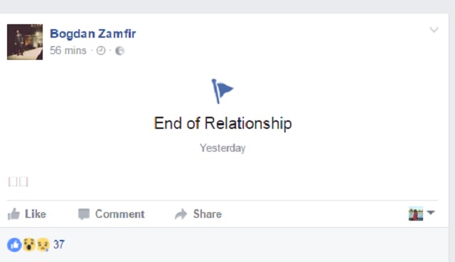 La câteva ore după ce vedeta a mărturisit că s-a despărţit de Bogdan Zamfir, modelul a făcut şi el unele modificări pe Facebook.
