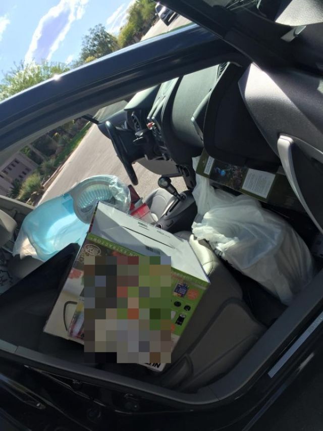 Vedeta tv şi-a umplut autoturismul după ce a dat o tură prin magazine. Astfel, ieşită de la cumpărături, impresara sexy a constatat că maşina era plină ochi de cadouri luate pentru familie.
