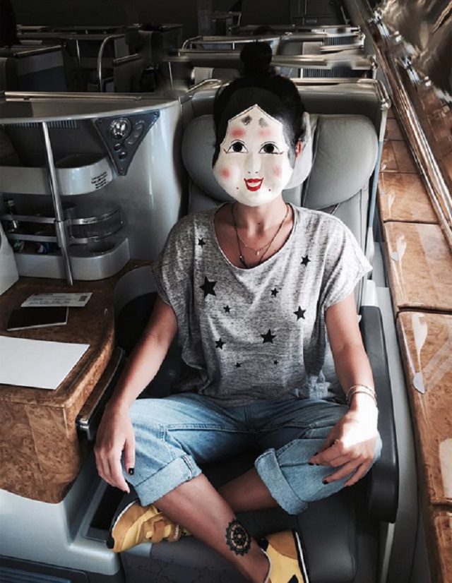 Inna călătoreşte des, fie că merge la concerte, fie că se relaxează în vacanţe de lux. Vedeta a postat în urmă cu puţin timp pe unul dintre conturile sale de socializare o fotografie în care apare cu o mască japoneză pe faţă.