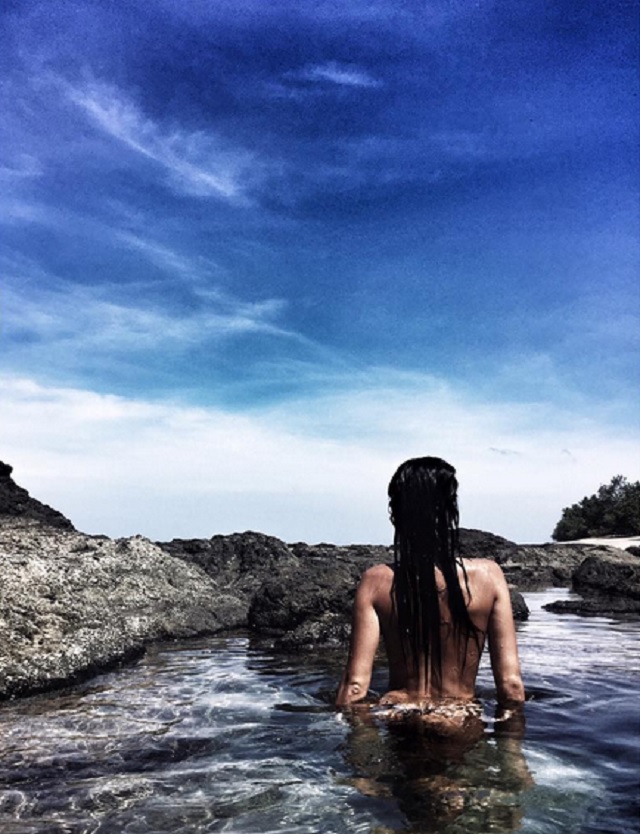 Inna face baie într-o apă limpede, înconjurată de nişte stânci. Fotografia pare inspirată dintr-o poveste. Fanii vedetei au rămas impresionaţi de poza ei şi i-au dat peste zece mii de like-uri.