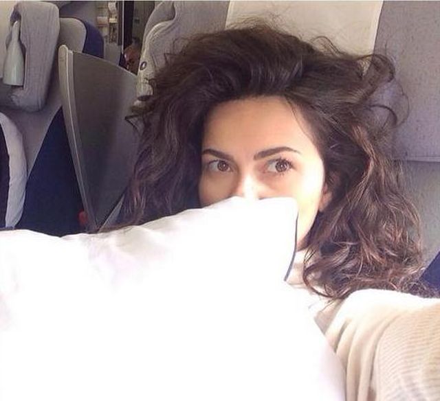 Inna preferă să poarte un look cât mai natural în timpul liber, aşa că renunţă la machiajul strident, sau de orice fel de machiaj, şi alege un aspect proaspăt, natural. În această dimineaţă, în avion, artista s-a fotografiat cu o pernă în braţe, pernă ce în acoperă jumătate de faţă, însă lasă să i se vadă chipul luminos şi curat. Părul este şi el la fel de natural, uşor răvăşit.