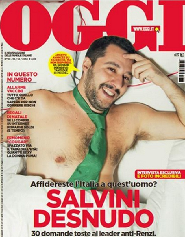 Europarlamentarul italian Matteo Salvini, liderul partidului antiimigranţi Liga Nordului, a pozat pentru revista Oggi purtând doar o cravată, iar fotografiile au devenit virale pe Internet, generând reacţii aprinse.