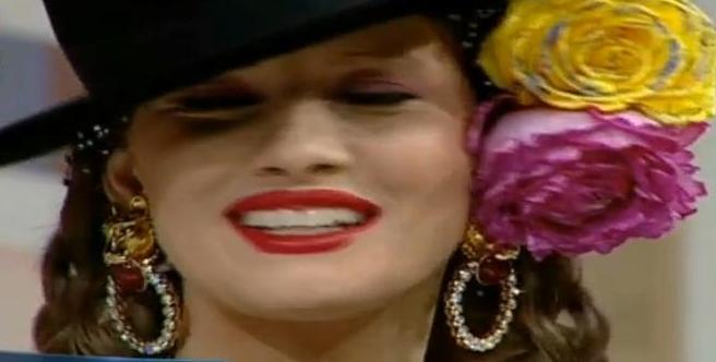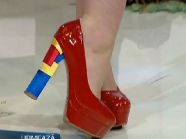 Vedeta a purtat ţinuta într-o emisiune de la KanalD şi părea mândră de faptul că este româncă. Evident din ţinuta ei nu aveau cum să lipsească accesoriile excentrice.