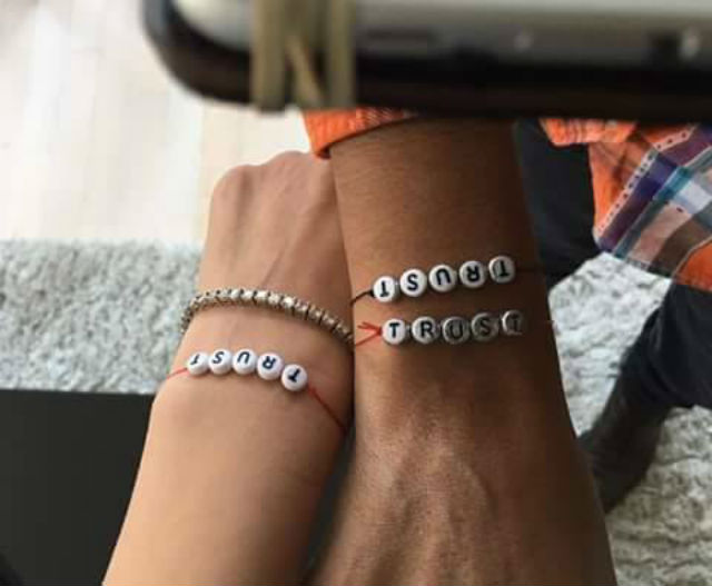 În timp ce iubita actorului de la Bollywood poartă brăţara pe care scrie în limba engleză "încredere" la încheietura mâinii stângi, bărbatul despre care mulţi dintre fanii vedetei cred că e chiar cel mai râvnit burlac al Indiei o poartă pe mâna dreaptă alături de o altă brăţară, care are acelaşi mesaj. Diferenţele sunt că una are aţa neagră, iar cealaltă roşie ― la fel ca a Iuliei Vântur.