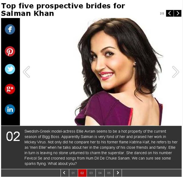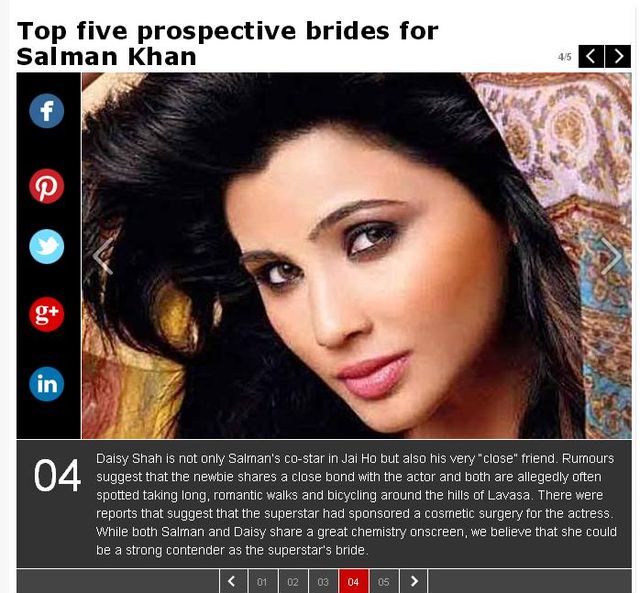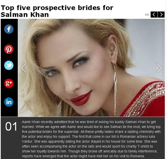 Mai mult, presa asiatică au făcut un top al mireselor lui Salman Khan. Surprinzător, pe primul loc se află Iulia Vântur ca favorabilă. Daisy Shah, actiţa care a filmat cu actorul în România, este abia be locul patru, conform timesofindia.com.