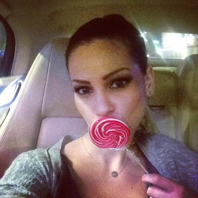 Asistenta TV s-a fotografiat în maşină, în timp ce are o acadea în mână. Iuliana pupă acadeaua roşie, făcându-le tare poftă bărbaţilor.