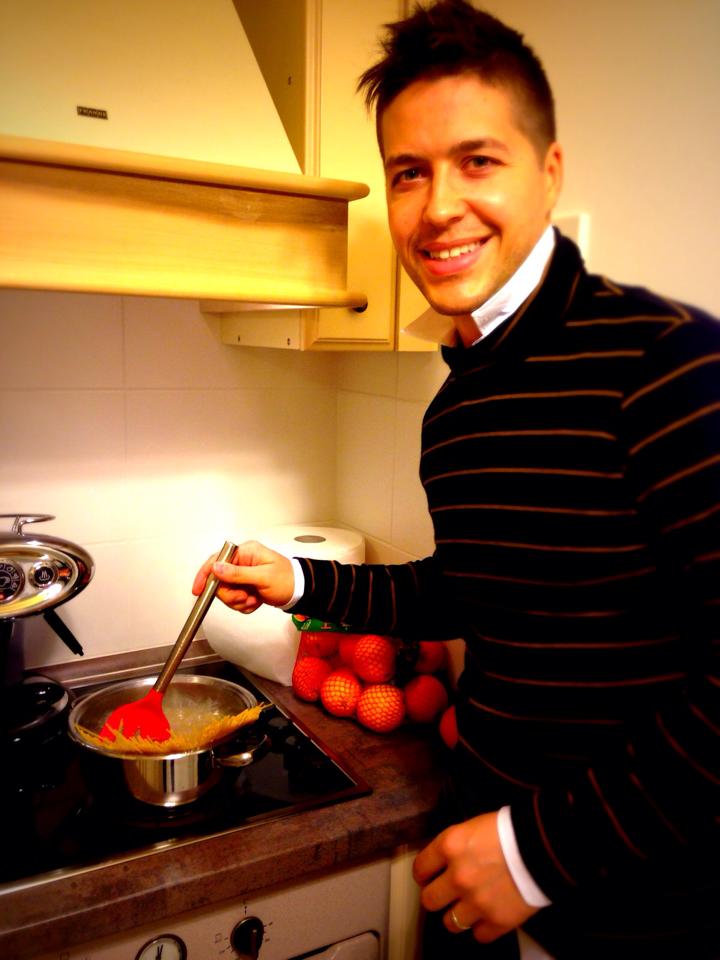 Îmbrăcat la patru ace, cu pulover şi cămaşă albă pe dedesubt, Jorge s-a pus pe gătit. Artistul nu se dezlipeşte de verighetă nici măcar când face pe bucătarul. Se pare că fericitul cuplu va servi la cină paste. La cum e îmbrăcat cântăreţul, nu ne-am mira dacă după reţeta eşuată, tinereii vor da o fugă în oraş să se răsfeţe la un restaurant cu specific italienesc.