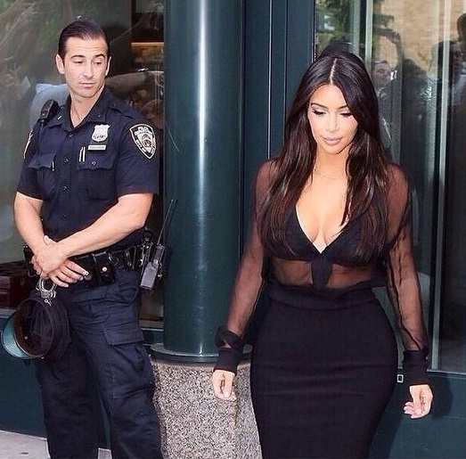 Kanye West este singurul care se bucură de formele voluptoase ale soţiei sale. Restul bărbaţilor pot doar să privească. Ei bine, poliţistul din imagine a privit fără nicio reţinere posteriorul bombat al lui Kim Kardashian.