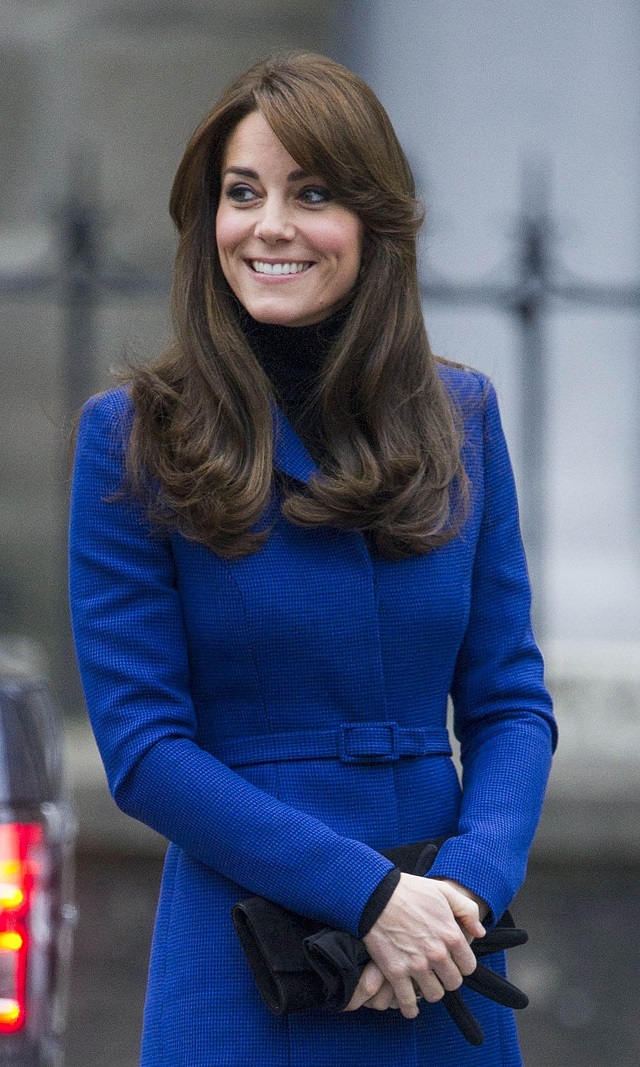 Ducesa de Cambridge a ales să poarte un palton albastru, care i-a pus în valoare formele perfecte, dezamăgindu-i pe cei care se aşteptau să vadă deja burtica de graviduţă.