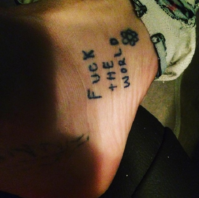 Ea și-a șocat fanii cu un tatuaj pe care l-a dezvăluit mândră pe o pagină de socializare. Artista în vârstă de 28 de ani le-a împărtășit fanilor săi noul desen pe corp, în care are scris :”F**k the world”(la naiba cu lumea), alături de o floare desenată stângaci. Fanii ei nu au fost prea încântați de mesajul artistei.
