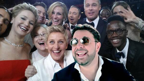 Gazda galei a adunat cei mai cunoscuţi actori şi a făcut cel mai celebru selfie. Această fotografie a fost cea mai distribuită din istorie, blocând reţeaua Twitter. Pentru că românului îi stă bine glumind, imediat a apărut pe internet o fotografie trucată. În locul cunoscutului actor Bradley Cooper a apărut faţa lui Florin Salam. Aşa că manelistul a apărut în fotografie alături de nume sonore ca Brad Pitt, Angelina Jolie şi Meryl Streep.