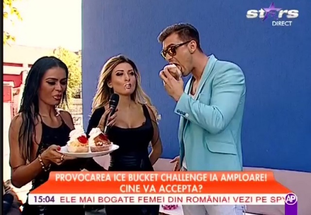 VIDEO / Renata a acceptat provocarea ”Ice Bucket”! Bogdan Vlădău a udat-o în direct