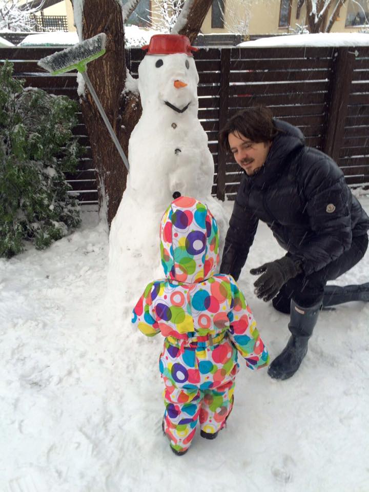 "Primul om de zăpadă", a scris Mihai Petre pe pagina sa de Facebook, în dreptul fotografiilor cu fetița.
