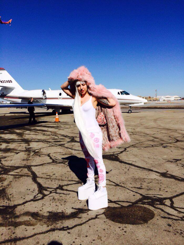 Lady Gaga este unică în felul ei şi se mândreşte cu asta, vedeta reuşeşte să-i uimească pe cei din jur la fiecare apariţie. Pentru călătoria cu avionul, Lady Gaga a ales să poarte o ţinută sport, însă nu a putut renunţa la tocuri, aşa că, aceasta a ales să poarte nişte pantofi sport cu o talpă supradimensionată ce ne îndreaptă cu gândul la copitele de cal. Părerile celor ce au văzut fotografia au fost împărţite în două, o parte îi admiră ţinuta şi curajul, în timp ce cealaltă parte au criticat-o pentru faptul că exagerează atât de tare. "Arăţi ca un cal", i-a spus unul admirator de pe Facebook.