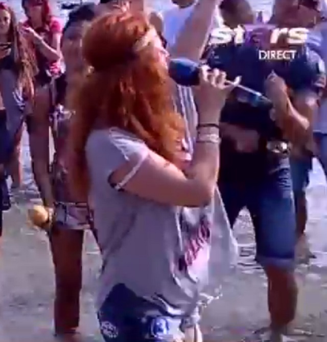 De această dată, cântăreaţa a venit pe plaja "Star Matinal" într-o bluză largă, căzută pe un umăr, care i-a lăsat la vedere lenjeria intimă. La un moment dat, breteaua sutienului i-a căzut senzual pe un umăr şi a pus pe jar imaginaţia bărbaţilor.