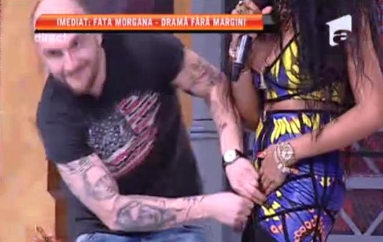VIDEO Laurette, provocatoare şi sălbatică! Artista a sărit în braţele lui Bordea şi a rămas în chiloţi