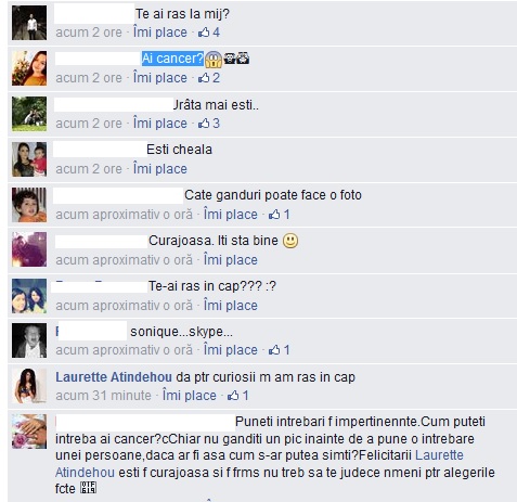 "Eşti cheală"/ "Ai cancer?"/ "Urâtă mai eşti", sunt doar câteva dintre reacţiile pe care le-au avut prietenii virtuali când i-au văzut noul look.