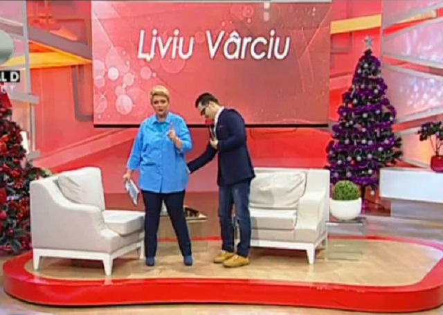"Mi-a plăcut, jur", a spus Liviu Vârciu după ce a "pălmuit-o" pe Teo. Prezentatoarea nu s-a supărat, ci, dimpotrivă, l-a invitat pe Liviu să petreacă împreună cu ea Sărbătorile.