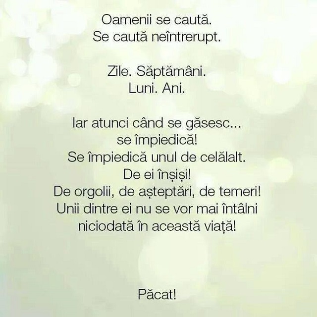 Foarte mulţi bărbaţi visează la o relaţie cu Loredana Chivu, dar frumoasa asistentă nu este atât de entuziasmată de ceea ce vede în jur în materie de dragoste. Blonda platinată de la "Un show păcătos" crede că o mulţime de oameni născuţi unul pentru celălalt nu rămân împreună din cauza orgoliului. "Oamenii se caută. Se caută neîntrerupt. Zile, săptămâni, luni, ani. Iar atrunci când se găsesc, se împiedică. Se împiedică unul de celălalt. De ei înşişi. De orgolii, de aşteptări, de temeri. Unii dintre ei nu se vor mai întâlni niciodată în această viaţă! Păcat", a scris Loredana Chivu, pe contul ei de Faceboo, adăugând că se simte plină de nervi şi lăsând, astfel, să se înţeleagă că şi ea a trecut prin asta.