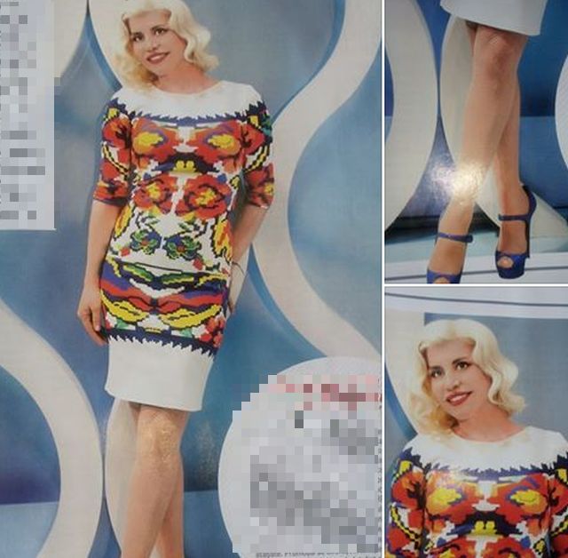 "Sunt la spalat de maşină. Am răsfoit agale o revistp. Recentă. Mai exact a fost valabilă până ieri. După ce nenorocire (de imagine) am descoperit, promit să nu mai rasfoiesc şi altă dată. O campanie (urâtă) la un detergent, care promovează (cică) să porţi haine româneşti. Pe scurt, Loredana (care probabil cp a luat muuulţi bănuţi pentru această fotografie) urâtă, după cum o să vedeţi în fotografiile făcute cu telefonul meu mobil. Ceva mai grosolan, mai retuşat cu forţa şi mai greşit din punct de vedere stilistic nu am mai vpzut de... niciodată, practic. Lăsând rochia deoparte (nu pentru că ar fi vreo piesă,ci pur şi simplu) trebuie să vedeţi ştrampii de dansatoare, unghiile de la picioare şi sandalele de divă din filmele pentru adulţi. Şi cu o măsură mai mari.