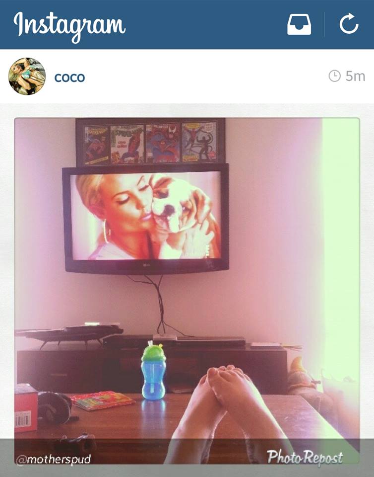 Blondina a postat pe internet o fotografie cu ea în timp ce se priveşte la TV. Acum că s-a împăcat cu Ice-T, serialul "Ice loves Coco" a revenit pe micul ecran şi se poate urmări din ce în ce mai des.