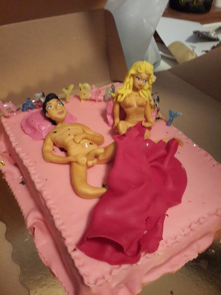 "Mulţumesc frumos familiei mele pentru tortul ingenios", este mesajul care însoţeşte fotografia cu torul extrem de explicit.