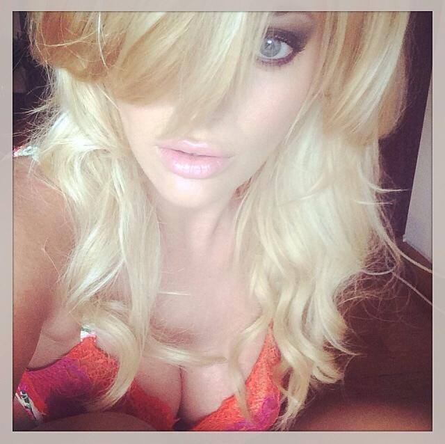 Blonda s-a fotografiat de aproape, îmbrăcată doar cu un sutien sexy, roşu, care-i scoate în evidenţă sânii mari. La această ţinută super incitantă, frumoasa Delia a "asortat" părul răvăşit şi privirea provocatoare, astfel încât i-a băgat în boală pe toţi.