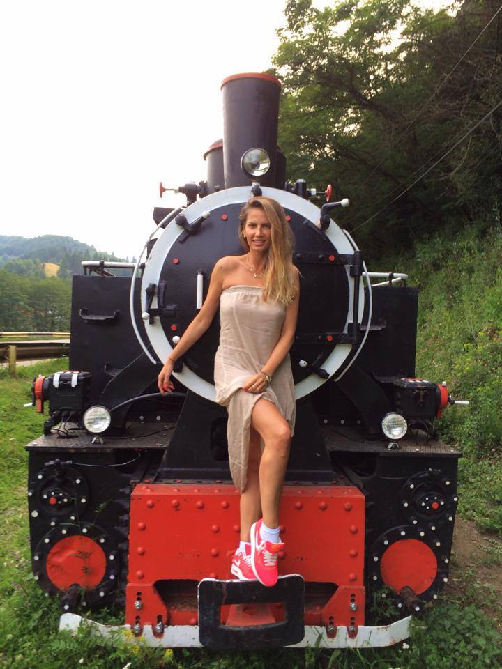Rareori o vedem aşa. Andreea s-a pozat fără pic de machiaj, fără sutien şi necoafată în faţa unei locomotive decorative, într-o zonă de munte. Cântăreaţa poartă o rochie bej din mătase, aproape transparentă, şi cam şifonată, la care a asortat încălţăminte sport roz. S-a căţărat pe locomotivă şi şi-a ridicat rochia lăsându-şi genunchiul la vedere, cu un gest sexy. E HOT sau nu?