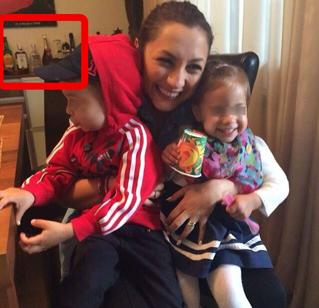 Andra şi-a făcut o fotografie când îi ţinea în braţe pe fiul ei, David, şi pe o fetiţă cam de aceeaşi vârstă cu el. Artista şi micuţa râdeau cu gura până la urechi, în timp ce fiul vedetei privea în altă parte. Cei trei stau pe scaun, în casă. Deşi pare o petrecere pentru copii, în spatele Andrei şi-al celor mici se vede în toată splendoarea "decorul" aranjat de vedetă: şapte sticle cu alcool stau ordonate pe o etajeră. În spatele lui David se mai pot desluşi câteva dopuri de sticlă, semn că Andra are un adevărat "arsenal" de băutură acasă.