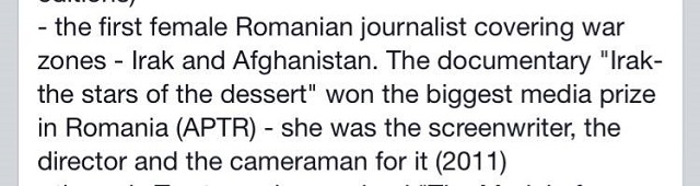 Cunoscută jurnalistă Mara Bănică a răbufnit în momentul în care a citit, întâmplător, biografia Mihaelei Rădulescu în care aceasta se lăuda, nici mai mult, nici mai puțin, că ar fi prima ziaristă femeie din România care a avut parte la ”acțiune” pe teatrele de război în care a fost implicatăî, în ultimii 20 ani, țara noastră.
