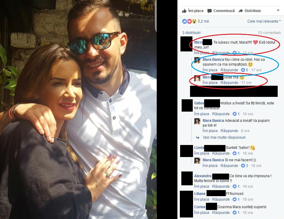 Carismatica Mara Bănică a urcat pe o reţea de socializare poza din acest material, iar o fană i-a scris că pentru ea e idolul său. Jurnalista i-a atras atenţia că ar fi mai bine să spună că o simpatizează, dar tânăra a avut o replică prin care se înţelege că lucrurile stau exact cum a spus ea prima dată.