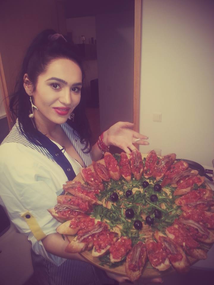 Ea a demonstrat că este familiarizată cu noţiunea de "artă culinară" şi a pregătit un platou uriaş cu bruschete. În mod surprinzător sau nu, platoul arată nu doar delicios dar şi sănătos.
