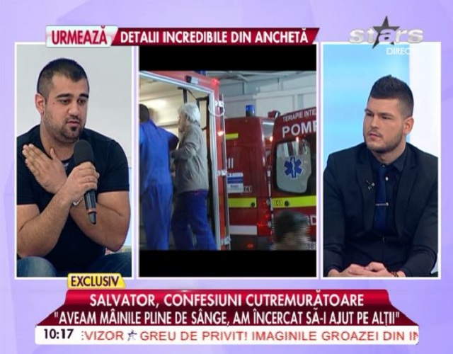 Misiunea lui nu s-a oprit acolo, salvatorul întorcându-se să ajute. "Primii care au ajuns au fost cei de la poliţie. Am luat oameni de picioare şi i-am urcat în salvare. Eu şi cu ceilalti bodyguarzi din Salsa am inceput să luam oameni şi să îi ducem în piaţetă. Şocul a venit la mult timp după. Am acţionat din instinct! Nu am avut timp să procesez informaţiile. Eu în fiecare zi sunt acolo. Nu contează câţi oameni ar fi fost, cel care a pus artificiile acolo, trebuia să pună şi un extinctor lângă. Aşa s-ar fi evitat totul", a mai spus salvatorul.