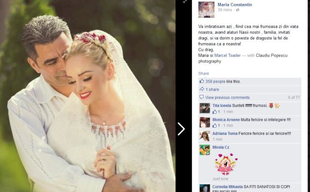 Mesajul Mariei Constantin postat chiar în această dimineaţă, în ziua nunţii cu Marcel Toader