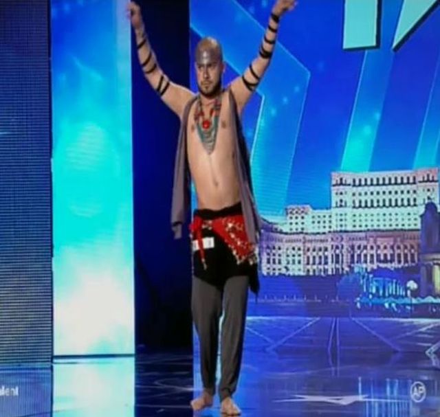 Mihaela Rădulescu a rămas interzisă după ce pe scena de la "Românii au talent" şi-a făcut apariţia un tânăr îmbrăcat sumar, pictat tot pe faţă şi care a făcut un număr de belly dance.
