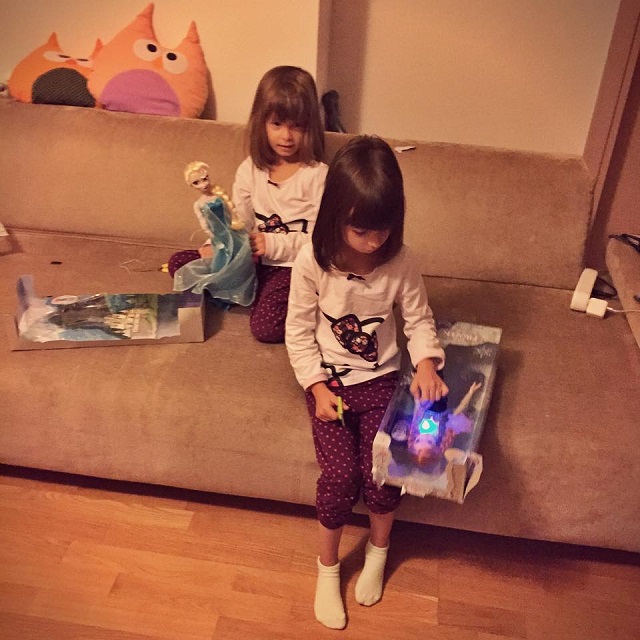 Realizatorul TV le-a cumpărat fetelor sale câte o păpuşă care imită personajele principale din filmul de animaţie "Frozen" Una dintre ele s-a grăbit să deschidă cutia de caouri şi s-a jucat, încântată cu păpuşa. Sora ei a fost, însă, un pic mai somnoroasă şi a desfăcut ambalajul mai greu, dar cu siguranţă s-a bucurat de cadoul primit. "Minunile există. De şase ani. ora 6 dimineaţa. La mulţi ani!", a scris Mihai Morar, pe contul lui de Facebook. Săptămâna trecută a f9ost ziua de naştere a lui Mihai Morar, aşa că el a fost cel răsfăţat de cele două fiice, dimineaţa, cu un tort pe care scria că-l iubesc.