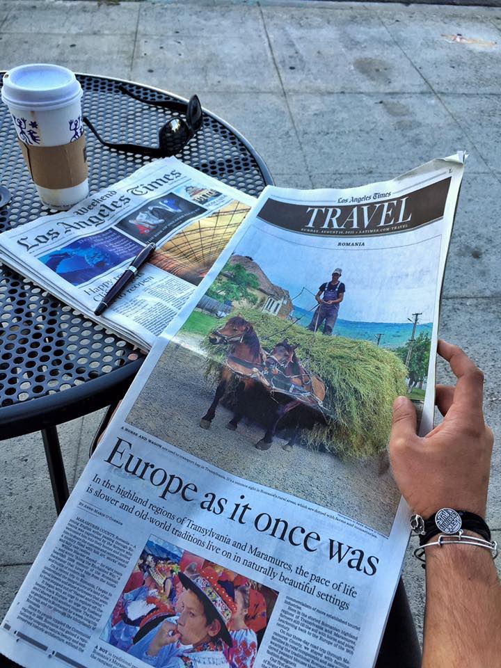 "ROMÂNI, DOAMNE FEREȘTE SĂ DAȚI LIKE LA AȘA CEVA! Nouă, românilor, ne place lauda. Cea de sine. E Sfârșitul Lumii, însă, dacă unul din noi se laudă cu țara, poporul sau tradițiile. Reporterul L.A. Times nu își scrie articolul documentându-se pe google. Ne-a bătut țara la pas, a locuit trei zile în Maramureș, a vizitat bisericuțele de lemn, a mâncat "a steaming bowl of mamaliga flavored with cheese and pork" gătită de călugării de la Mănăstirea Rohia, a trecut pe la sculptorii în lemn de la Bârsana. [...] Un cuplu de americani, el și ea, aflați pe la a doua vârstă, bronzați puternic de soarele zilnic al Californiei, trăgeau cu ochiul la o fotografie cu icoanele dintr-o bisericuță din Maramureș.
