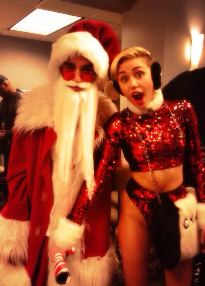 Miley a făcut senzaţie în ultima perioadă prin atitudinea şi ţinutele nonconformiste. Pentru a fi în ton cu sărbătorile, fosta Hannah Montana a îmbrăcat un costum de Crăciuniţă, dar nu unul oarecare, ci extrem de sexy. Într-un top roşu, din paiete, care îi lasă la vedere abdomenul bine lucrat şi o pereche de chiloţei asortaţi, Miley s-a pozat alături de Moş Crăciun, căruia îi ţine în mâna, "acadeauna".