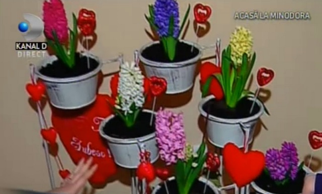 Minodora a adus spiritul "Zilei îndrăgostiţilor" în locuinţa ei şi a umplut casa cu inimioare şi lumânări. "Ornatul durează cel mai mult două ore! Am făcut prăjituri cu chimen pentru papi meu, Liviu", a declarat solista, vineri, într-o emisiune de la Kanal D.