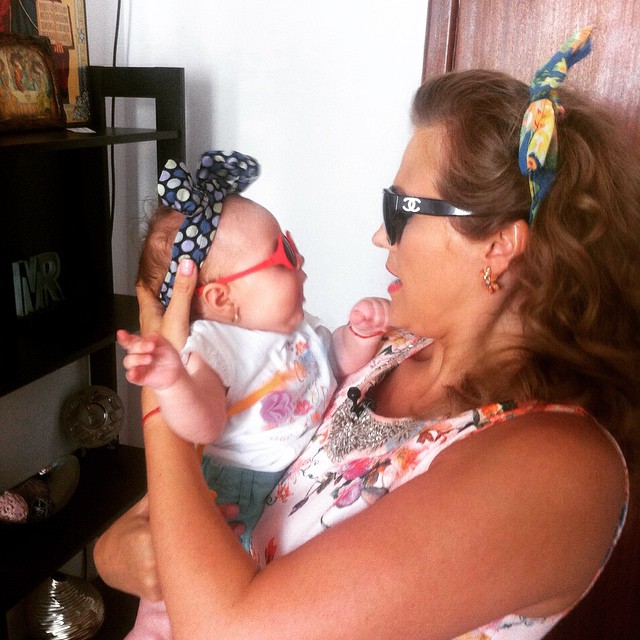 Cele două sunt îmbrăcate aproape la fel şi poartă pe cap câte o bentiţă. Mai mult, gazda emisiunii "Mireasă pentru fiul meu" i-a pus fetiţei ei şi o pereche de ochelari de soare. "La mulţi ani, copii de pretutindeni", a scris Mirela Boureanu Vaida, pe Facebook.