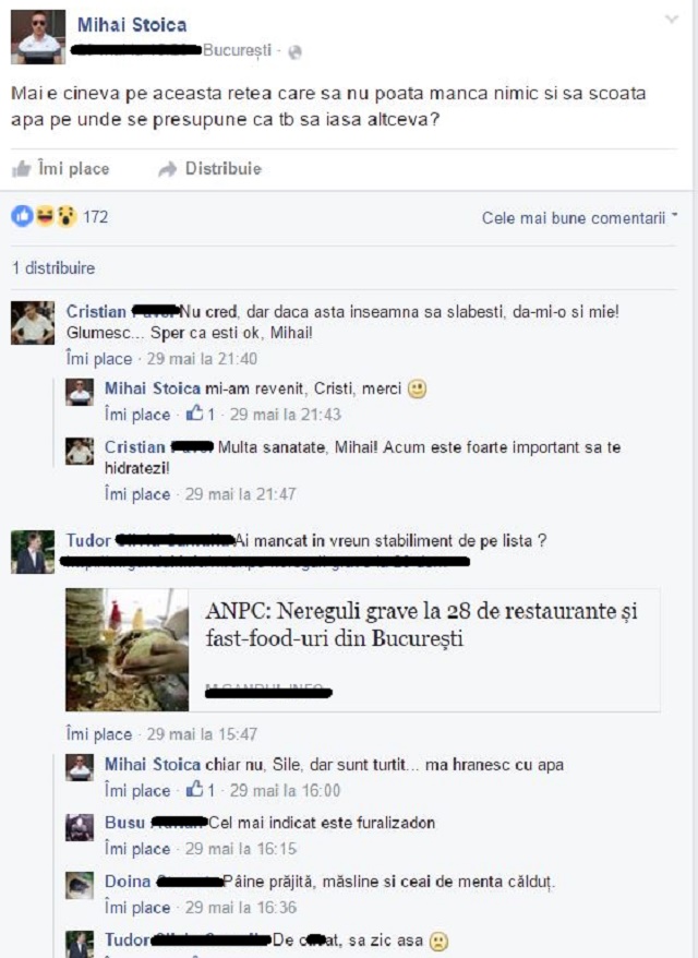 Mai exact, așa cum chiar el a recunoscut, problemele de sănătate au apărut brusc, el suferind, probabil, de o enterocolită acută., Mai clar, directorul sportiv al Stelei a ajuns în situația de a nu mai putea mânca nimic fără să elimine imediat. De altfel, el a și apelat la amicii săui virtuali pentru a scăpa de ”problema” care îl ținea țintuit în apropierea locului în care și regii merg singuri. ”Mai e cineva pe această rețea care să nu poata mânca nimic și să scoată apă pe unde se presupune că trebuie să iasă altceva?”, a fost întrebarea pe care a pus-o, disperat, MM Stoica, iar răspunsurile, unele mai serioase, altele mai în glumă, nu au întârziat să îi vină, sfaturile variind de la cele naturiste, la medicamente împotriva diareei.