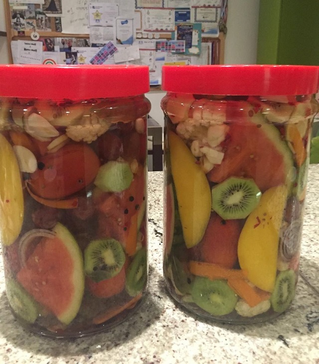 "Nu contează cât de doamnă eşti în lume şi cât de înalte ţi-s tocurile, în bucătărie tot tre' să-ţi sufleci mânecile şi să pui murături. Altfel nu eşti româncă de soi. Mândră să vă prezint colecţia de toamnă-iarnă la Monaco - pătlagele înfraţite cu kiwi, usturoi cu mango, pepene cu ghimbir, conopidă cu prune. Se poartă la dineuri simandicoase, unde vrei să iei minţile consumatorilor care cred că doar icrele negre sunt delicatese. Murăturile în saramură nu se demodează niciodată. S-aveţi poftă de viaţă!", a scris Mihaela Rădulescu pe Facebook.